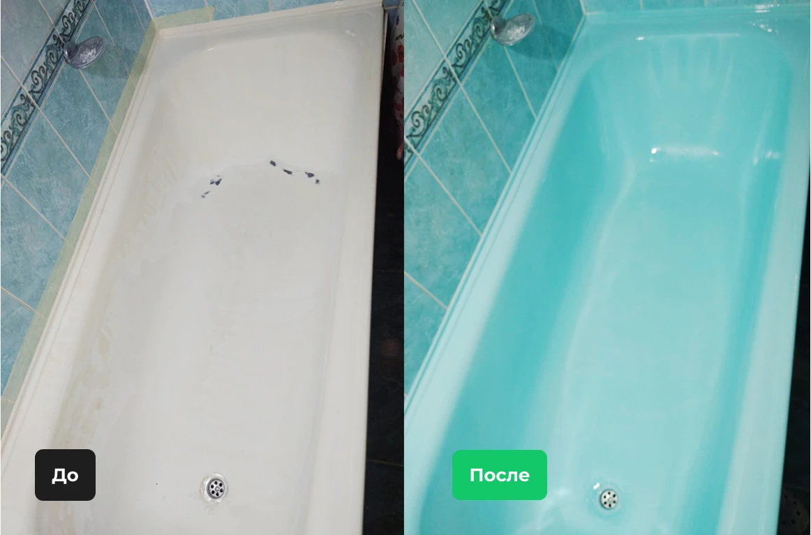 - Быстрый результат: процесс занимает всего 2–5 часов, а ванна готова к использованию через 1–2 дня.